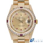 ロレックス デイデイト ベゼルダイヤ 4Pルビー サークルダイヤ 10Pルビー 18378LR シャンパン W番 中古 メンズ 腕時計