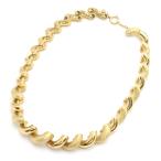 ハーフサークルネックレス K18YG ツイストネックレス 梨地×鏡面 太い ワイド 18金 半円 金無垢 イエローゴールド 地金66.2g 中古 送料無料
