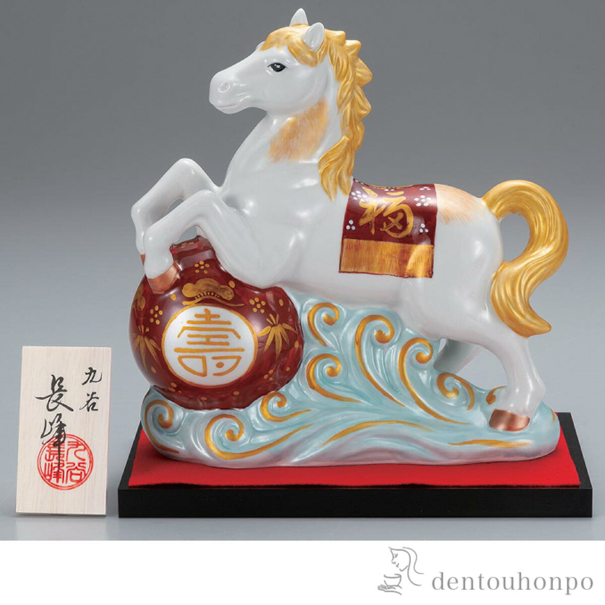 【5%OFFクーポン 本日23:59まで】 干支置物 波乗り午 赤金彩 7.5号 台・敷物・立札付 ( 退職祝い 定年 午 馬 十二支 2026年 開運 九谷焼 結婚 出産 内祝い 引き出物 金婚式 誕生日プレゼント 還暦祝い 古希 喜寿 米寿 退職 定年 プレゼント お祝い お返し お礼 令和 )