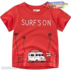 Tシャツ トップス キッズウェア 子ども服 男の子 女の子 半袖 ラウンドネック プリント ファッション 夏服 車 キャンピングカー サーフボード