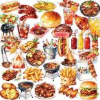 BBQ バーベキュー 焼肉 ステーキ 焼き鳥 ポテト 焼き魚 ハンバーガー ソース 料理屋 バー 店舗装飾 透明台紙 シール ステッカー55枚X1