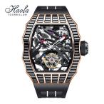 Haofa2310 腕時計 メンズ スケルトン トゥールビヨン 機械式自動巻き おしゃれ 防水 高級 紳士 人気 男性プレゼント クリスタル