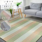国産い草ラグカーペット サーブ 裏貼有り グリーン/ブルー 191x191cm 本間2畳用 爽やか縞柄 フローリング対応 日本製