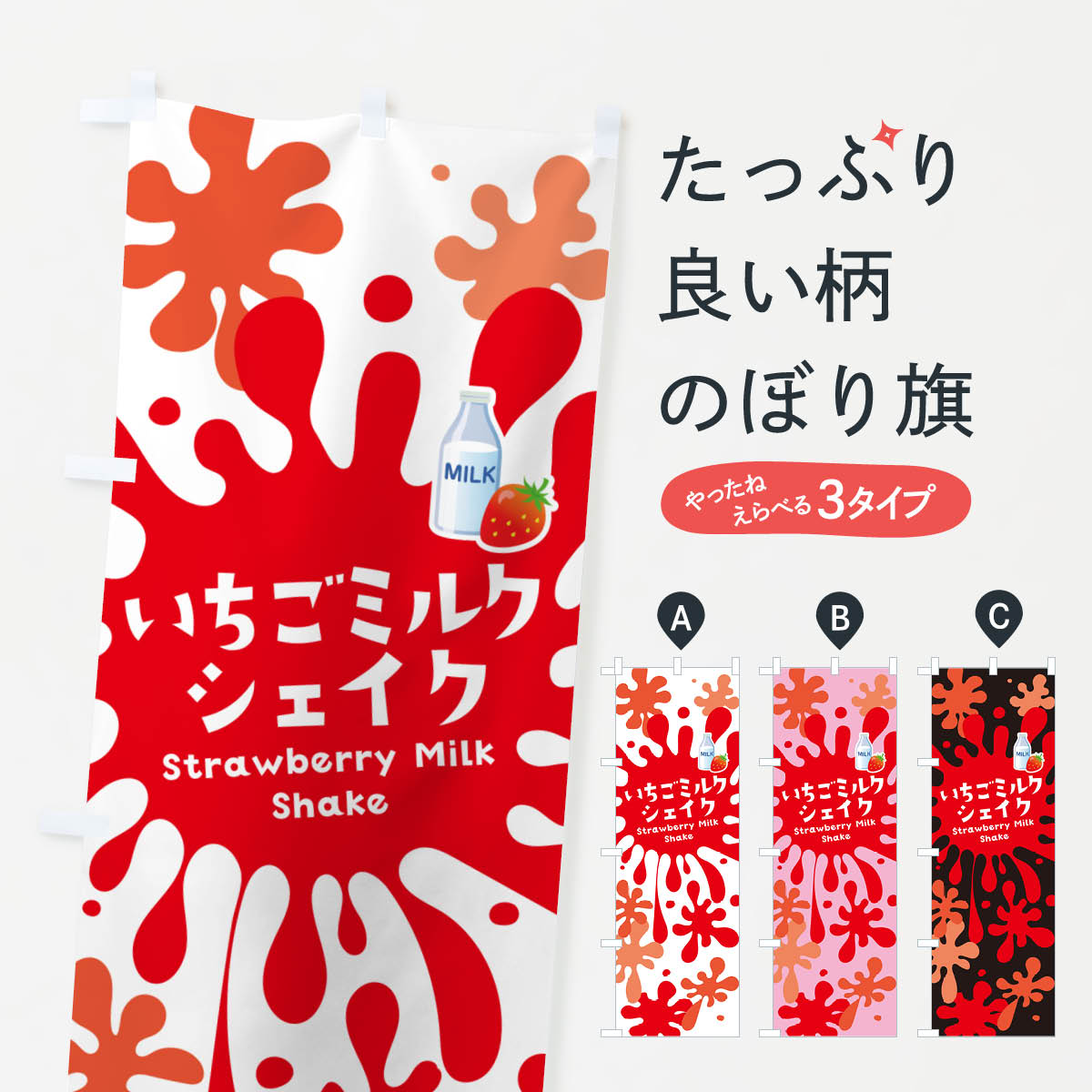 のぼり 旗 いちごシェイク イチゴシェイク ドリンク 苺 美味しい 喫茶店 カフェ イラスト 600*1800
