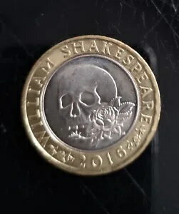 *スーパーレア* 特別な 2016 年ウィリアム シェイクスピア 2 ポンド コイン スカル 鋳造エラーあり