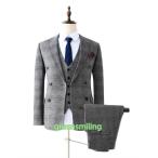 スリーピーススーツ メンズ ビジネス スリムスーツ 千鳥格子 グレンチェック 3ピース ダブル ストレッチ ジレ ベスト付き 三つ揃いスーツ ブローチ付き