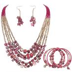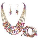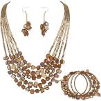 【並行輸入品】5層 クリスタルシェル ビーズ ステートメントチョーカー ネックレス イヤリング ジュエリーセット レディース ガールズ ファッシ