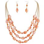 【並行輸入品】Firstmeet 3層 真珠層ビーズネックレス イヤリング シェルビーズ ペンダント ジュエリー 女性用, シェル ガラス, 宝