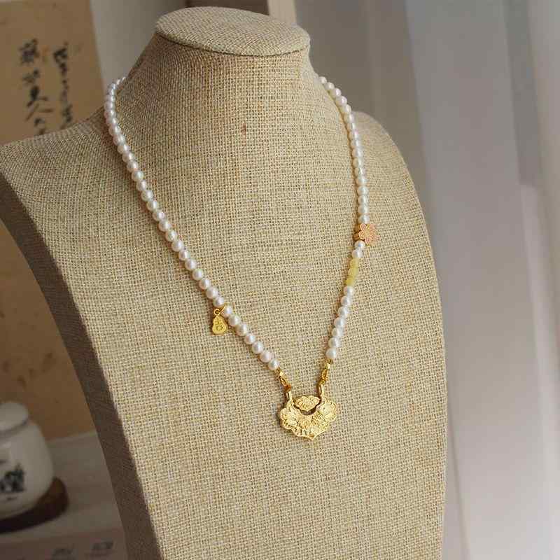 ネックレス アクセサリー 仏教 タイ 仏陀 チェーン ロング シェルビーズ 14K ゴールド シルバー ホワイト パール 蝶 合金 エスニック