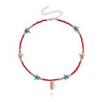 【並行輸入品】ターコイズビーズチョーカーネックレス 天然ボヘミアンシェル ヒトデ 鎖骨チェーンペンダント 小さな上品なビーズ ミニマリストジュエ