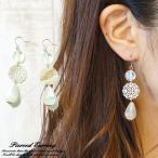 エスニック シェル ビーズ フック ピアス 〈 イエロー ターコイズ パープル 〉送料無料 アジアン アクセサリー イヤリング 紫 ブルー 青 ゴールド 緑 黄