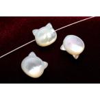 【3粒セット】(横穴)ぷっくり可愛い!マザーオブパール猫 6mm 粒売り_T574-6