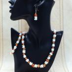 ネコポス送料無料 フィリピン セブ シェルビーズアクセサリー3点セット 貝アクセ レディース ピアス ブレスレット ネックレス PC02SS001OR