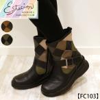 送料無料 ブーツ エスタシオン 靴 レディース estacion 本革 ショート ミドル 歩きやすい マルチ エンジニア パッチワーク レザー ローヒール / fc103