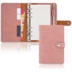 システム手帳 バイブルサイズ フェイクレザー 6穴リング 4種類 リフィル付属 ポケット ペンホルダー搭載(ピンク, バイブル)