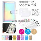 システム手帳 バインダー 4点セット 手帳 a6 6穴 手帳カバー レディース ビジネス ペンホルダー カードホルダー付き 収納ポケット 名刺やチケット収納