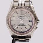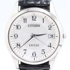 シチズン CITIZEN エクシード エコ ドライブ メンズ 腕時計 デイト H113-T009239 白 シルバー 電波 ソーラー クォーツ 【中古】 ht5058