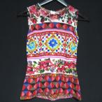 美品 DOLCE&GABBANA ドルチェ&ガッバーナ シチリア柄 シルク ノースリーブ ブラウス サイズ36 マルチカラー レディース 古着 中古