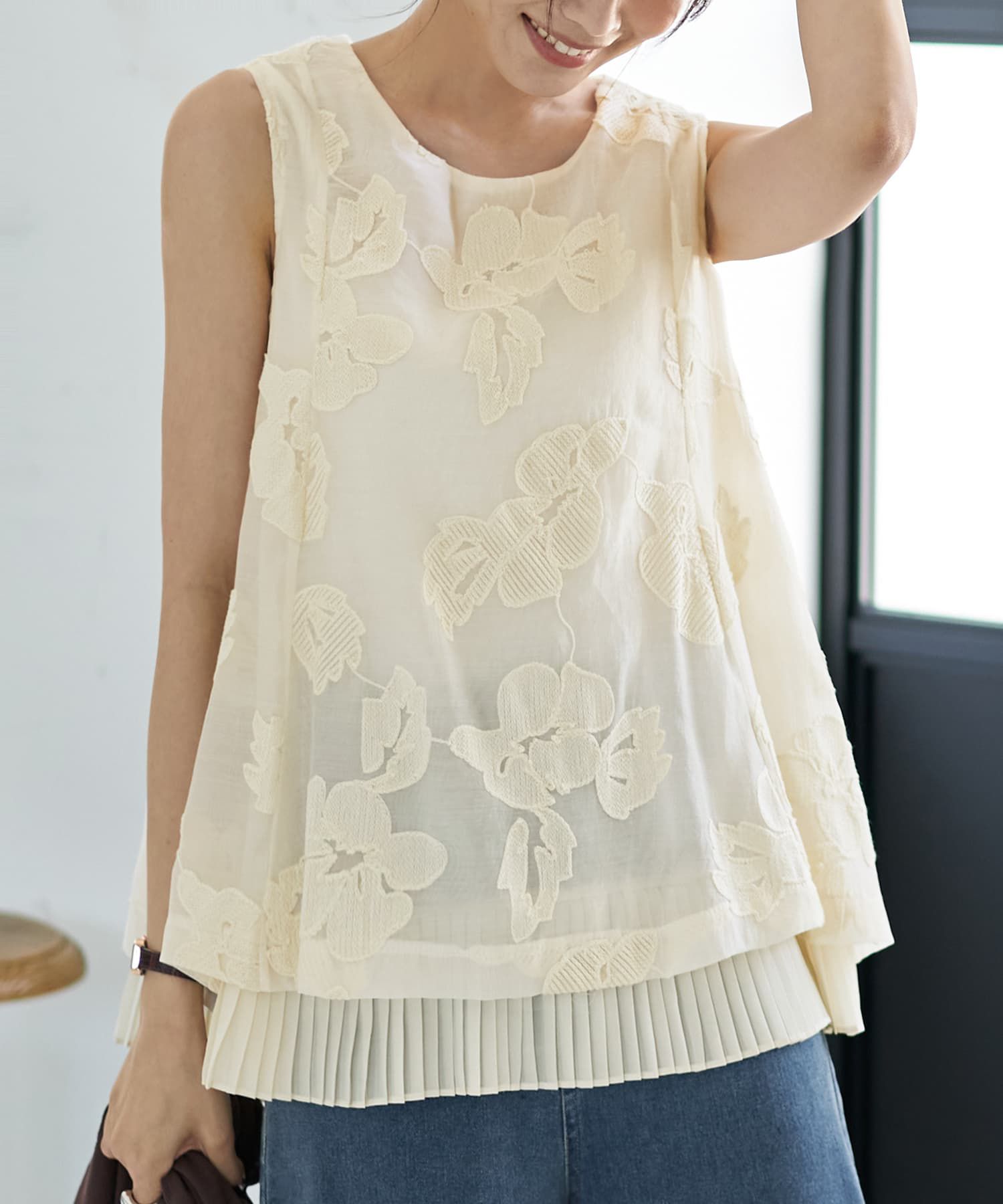 STYLE DELI(スタイルデリ)/プリーツレイヤードフラワー刺繍ブラウス