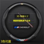 シボレー Chevrolet ハンドルカバー ステアリングホイールカバー 軽自動車 本革 ロゴ入り 通気滑り止 カーボン
