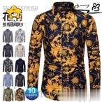 シャツ メンズ アロハシャツ 長袖 花柄シャツ カジュアルシャツ 総柄 開襟 スリム 細身 メンズシャツ 長袖シャツ トップス 柄シャツ