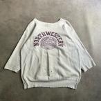 50'S NORTH WESTERN UNIVERSITY Water Print Dameged Raglan Sweat Shirts WHITE 50年代 ノースウェスタン大学 染み込みプリント ダメージ スウェットシャツ
