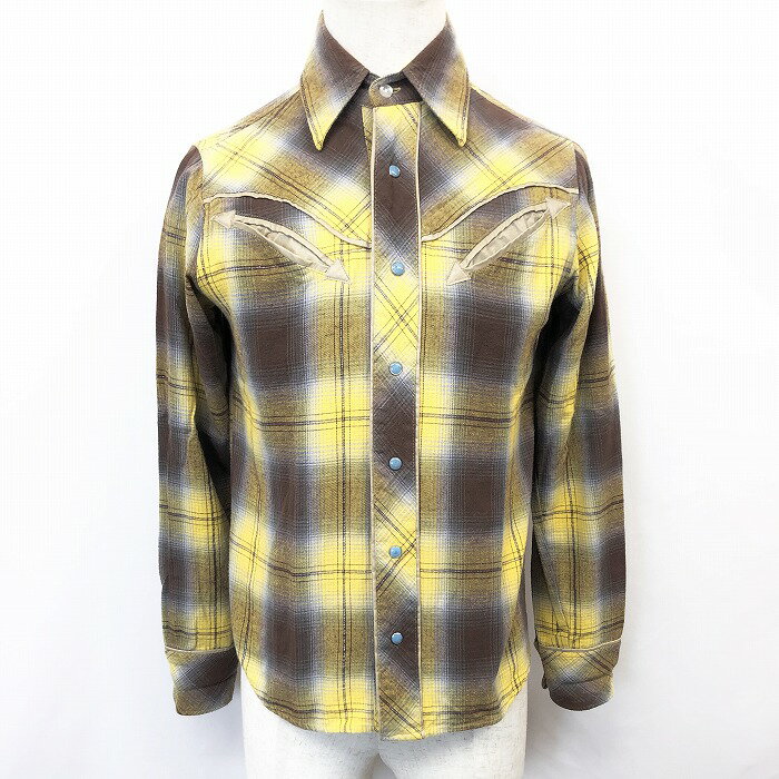 【楽天スーパーSALE限定!! \★35%OFF★/対象商品|12月4日(木)20時00分〜12月11日(木)01時59分まで】【中古】 GOTCHA ガッチャ XS メンズ チェックシャツ ウエスタン ドットボタン 長袖 服 綿100% イエロー×ブラウン×ライトパープル×ラメシルバー