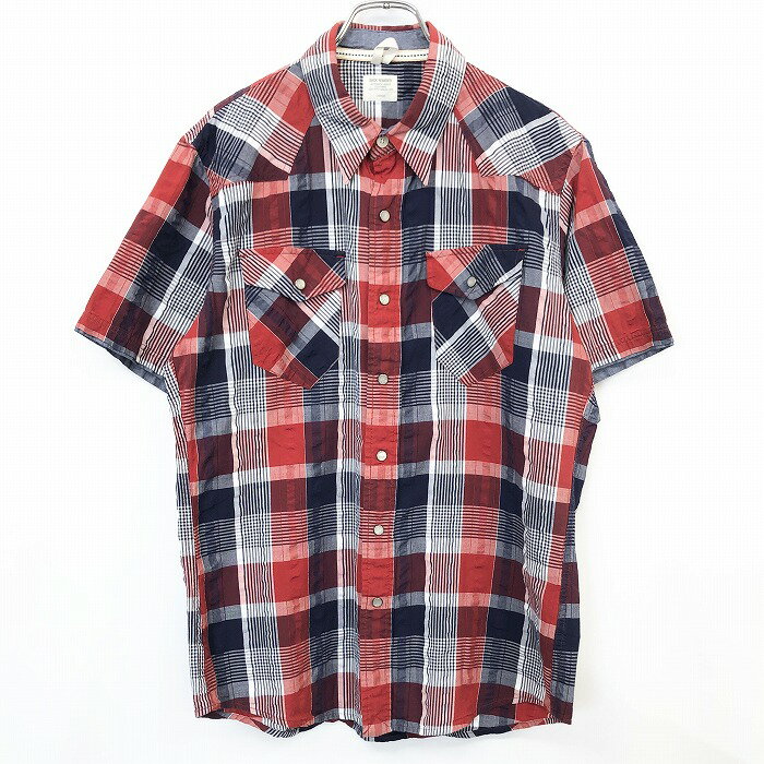 【楽天スーパーSALE限定!! \★35%OFF★/対象商品|12月4日(木)20時00分〜12月11日(木)01時59分まで】【中古】BACK NUMBER バックナンバー L メンズ ウエスタン クレープシャツ チェック ドットボタン 半袖 綿100% テラコッタ×ネイビー×ホワイト