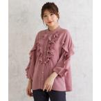ブラウス シャツ ダンガリーラッフルフリルブラウス レディース