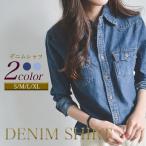 デニムシャツ レディース 長袖 ダンガリーシャツ ウエスタンシャツ トップス ブラウス ウエスタンデニム ブルー おしゃれ きれいめ 春 秋 デニムブ