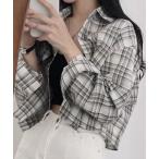 ブラウス シャツ チェックショートドロストシャツ レディース