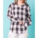 ブラウス シャツ WOND/フーデッドチェックシャツ レディース
