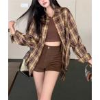 ブラウス シャツ レトロチェック柄シャツ レディース