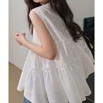 【店内全品20%OFFクーポン】10/27 9:59まで■ラッフルデザインフレンチスリーブブラウス トップス レディース ブラウス シャツ ノースリーブ フレア リボン 光沢 シンプル【メール便可/90】