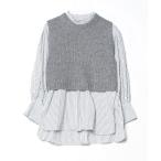 ベスト レディース トップス ブラウス シャツ 秋冬 トップス 長袖 ニット ベスト 2点セット レイヤード 重ね着 返品交換不可「メール便不可」「20」