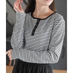 tシャツ ヘンリーネックボーダートップス レディース