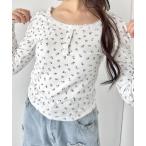 tシャツ 花柄 針抜き フライス ヘンリーネックTシャツ レディース