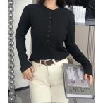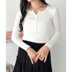 tシャツ ヘンリーネック長袖リブコンパクトトップス レディース