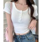 tシャツ ヘンリーネック コンパクトTシャツ レディース