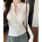 tシャツ ヘンリーネックコンパクトリブトップス レディース