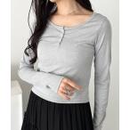 tシャツ ヘンリーネックリブロングTシャツ レディース