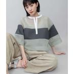 tシャツ ヘンリーネックハニカムボーダー レディース
