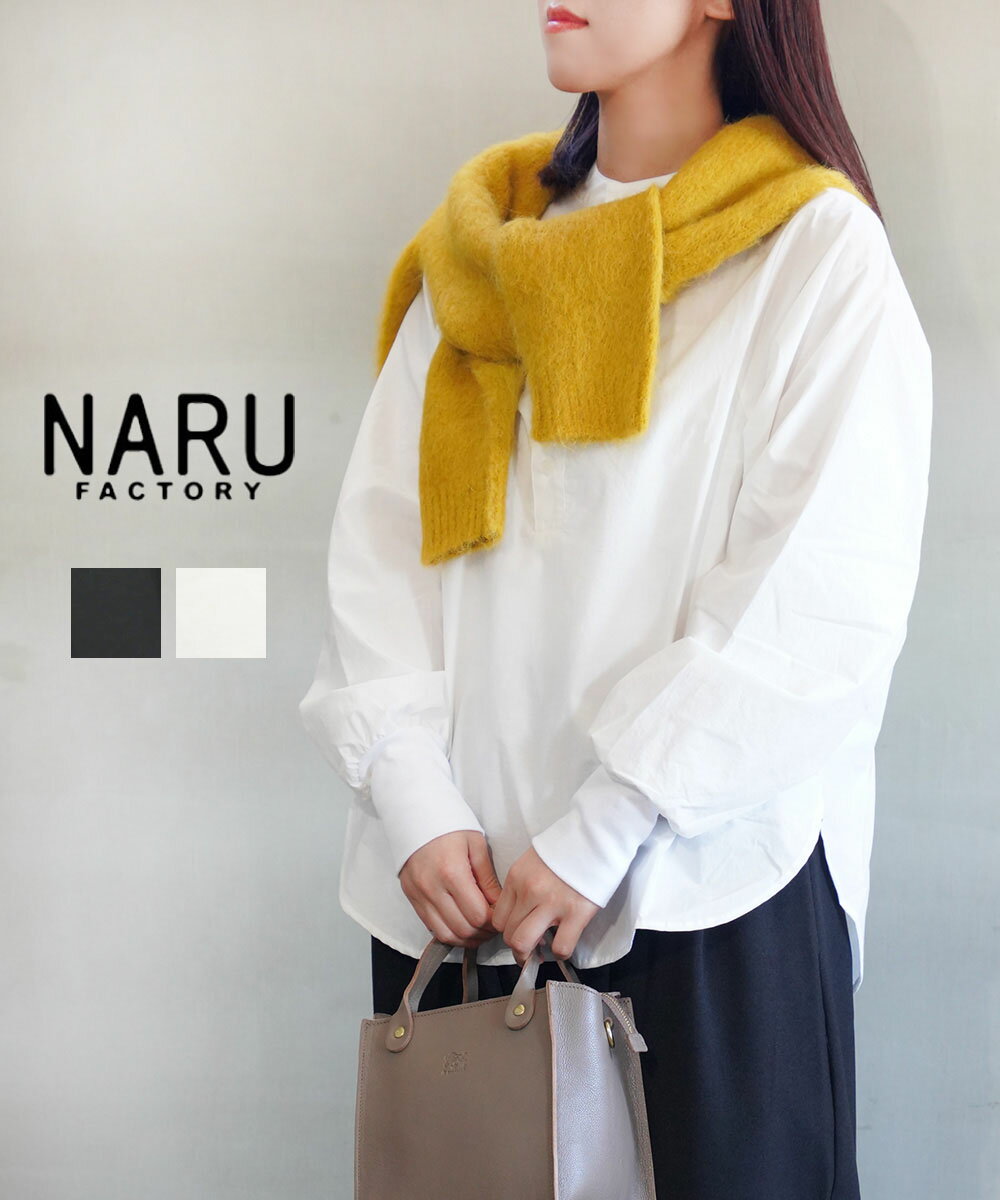 【30%OFF】【LINEクーポン有】【2025年秋冬新作】ナル naru シャツ ブラウス トップス 長袖 ヘンリーネック バンドカラー 綿 コットン ゆったり シンプル・666901-2002502(レディース)