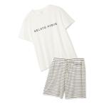 パジャマ ルームウェア レーヨンロゴTシャツ&ボーダーハーフパンツセット レディース