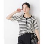 tシャツ ボーダーテレコヘンリーネックTシャツ レディース