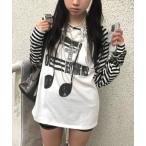 tシャツ ボーダー袖グラフィックロンT/オーバーサイズ ストリートトップス レディース