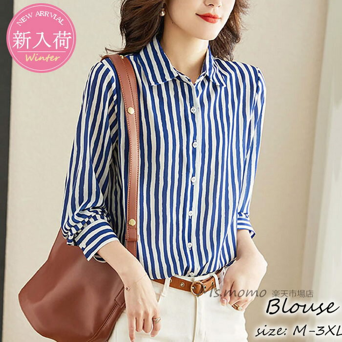 シャツ ブラウス レディース ストライプ柄 シャツ ボーダー柄シャツ 柔らかい 薄手 トップス 長袖 シャツ オフィス 通勤 OL 上品 女性らしい 大人 おしゃれ 韓国風