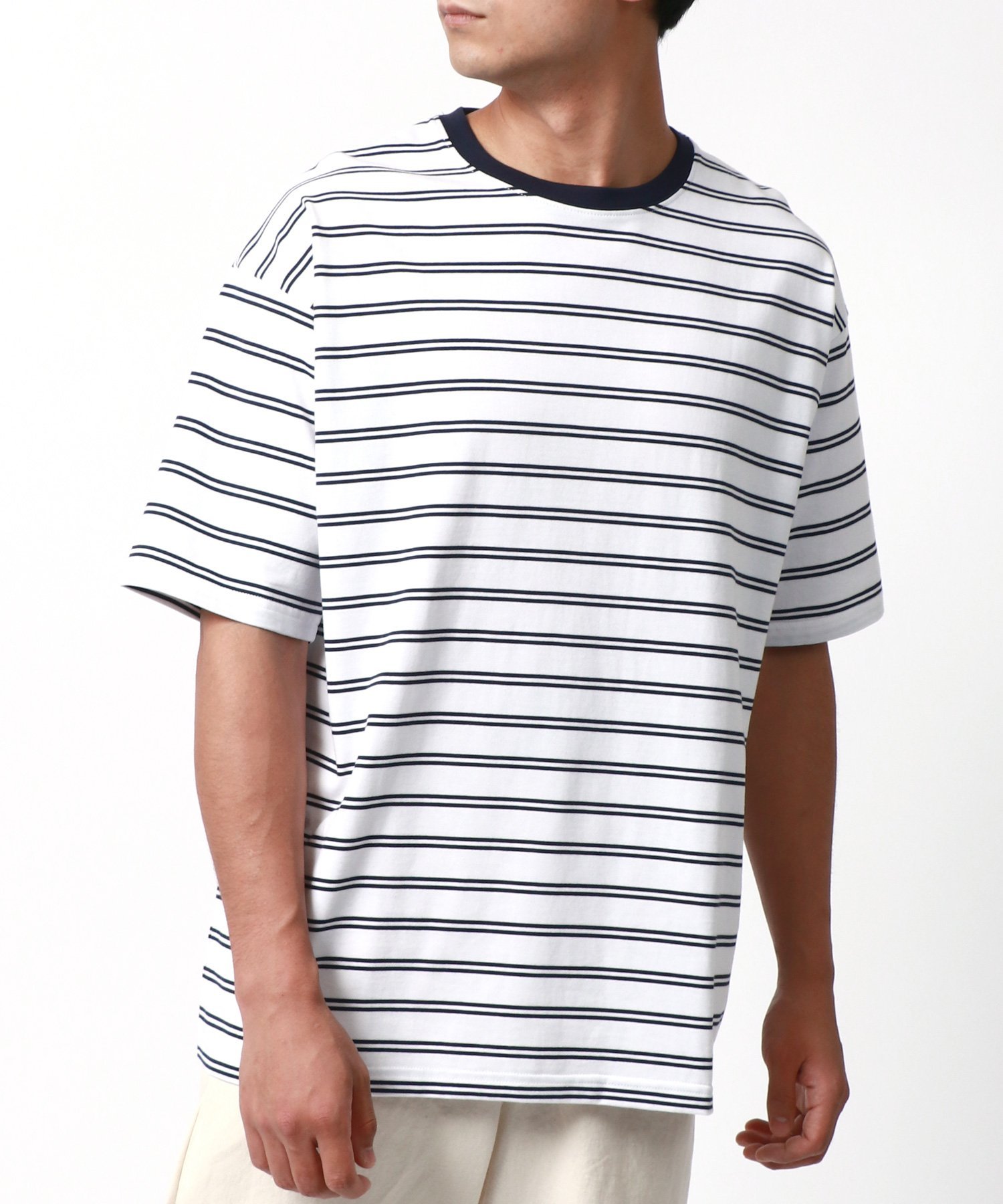 【SALE/5%OFF】MRU Tシャツ ティーシャツ メンズ ボーダー 吸汗速乾 冷感 UVカット 半袖 マルカワ トップス カットソー・Tシャツ ネイビー ベージュ ブラック ホワイト