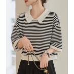 tシャツ ボーダー柄7分袖丸襟カットソー レディース