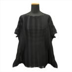 新品同様 me ISSEY MIYAKE ミー イッセイミヤケ 19ss プリーツ加工 スクエア シアー カットソー Tシャツ ボーダー シースルー 黒 ブラック レディース 古着 中古